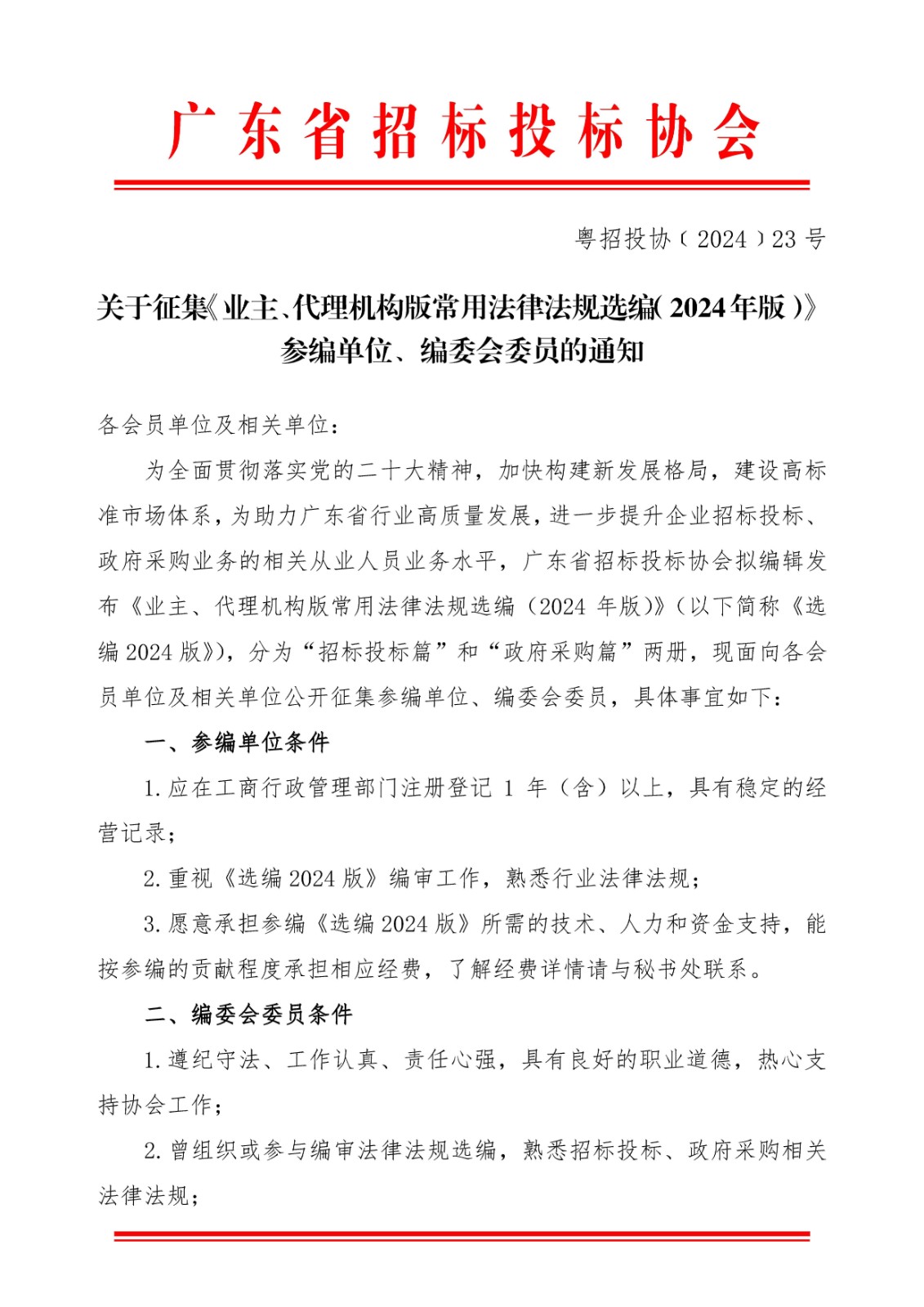 【转】关于征集《业主、代理机构版常用法律法规选编(2024年版)》参编单位、编委会委员的通知